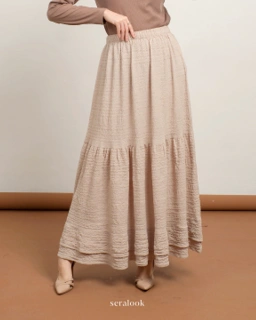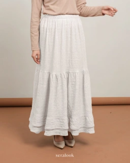 Rok dengan desain feminim yang bisa membuat lookmu terlihat anggun dan elegan. Cutting rok yang nyaman dan timeless ini untuk dipakai acara formal maupun sehari-hari.